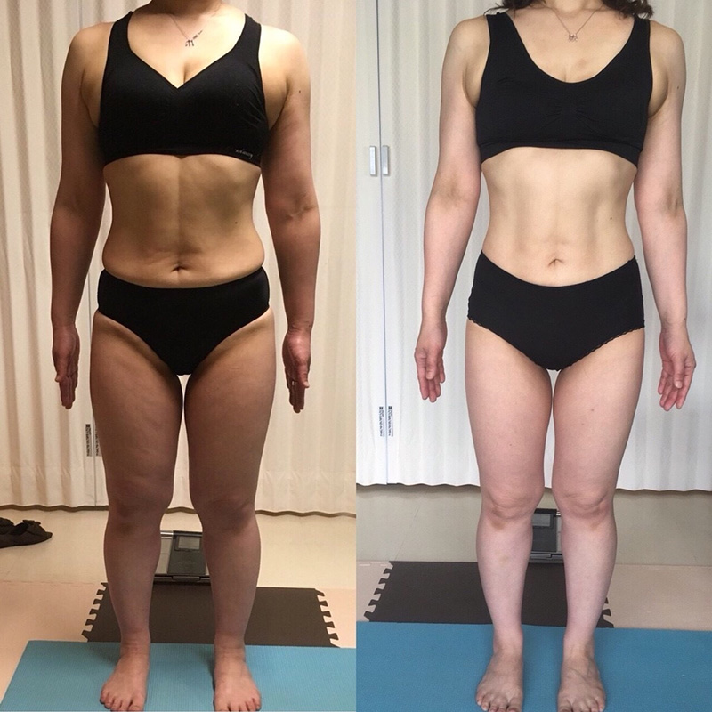 大好きな甘い物とお酒も我慢することなく体重を落とせたのでストレスもなく全く苦痛ではありませんでした。(デトックススープもおいしくて毎日食べました)もともとトレーニングなど全然してなかったので最初は、しんどかったけど回数を重ねる度にスムーズに出来るようになり、それが身体にも効果として出てきたのでもっと頑張ろうという気持ちになれました。